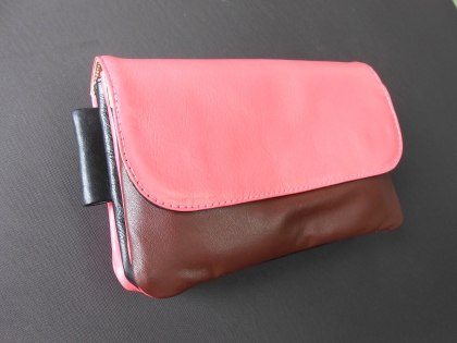 ショルダーベルトを外して、ポーチとしても可愛い | ピンク、黒、こげ茶色の牛革を使用 | |