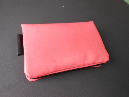 内装は赤系布地で明るく見やすい、ポケットもあります | 底は小判底でもこもこ感を出しています |
