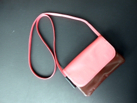 多色3連ポシェット(参考品) スマホなど収納できる、ピンク色メインの黒、こげ茶 を加えたカラフル、可愛いポシェットに なっています、この製品は非売品です。 ショルダーベルトを外してポーチとしても可能 材料 クローム牛革 各色 サイズ h130×w195×d45 詳細はpcホームページへ hp-528 |